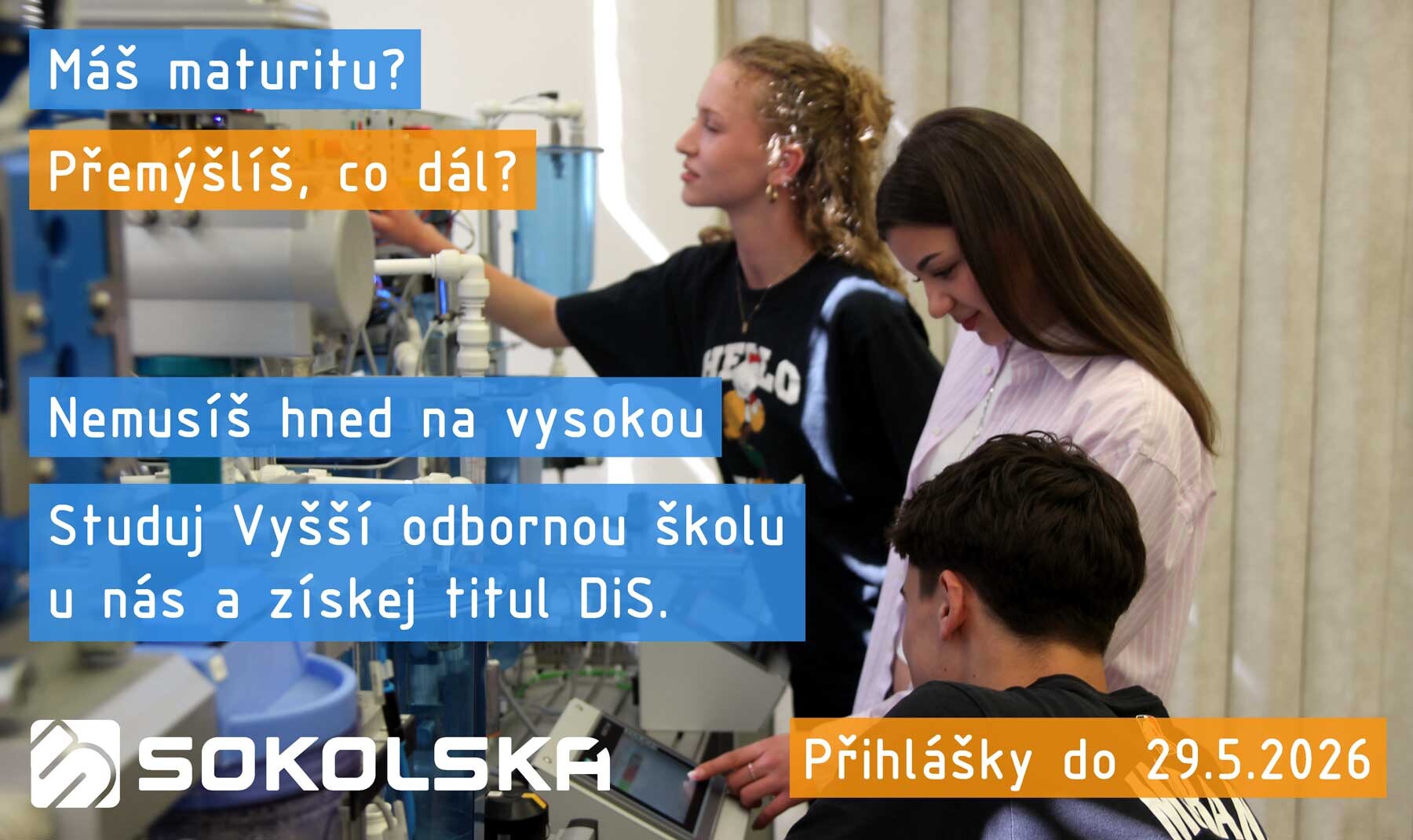 Naše průmyslovka na Sokolské ulici nabízí kvalitní vzdělávací programy s maturitní zkouškou v pěti hlavních oborech: