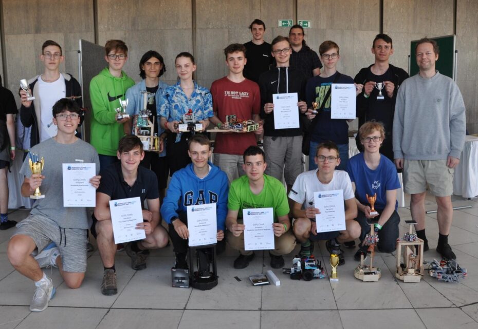 Tvůrcům robotů, Filipu Sobolovi (L2A), Jakubu Šlofovi (L2A), Anetě Novákové (L2A), Janu Křivkovi (L2A), Vítu Němcovi (L2A), Marku Bajerovi (L1A), Václavu Burdovi (L1A), Stanislavu Chlupovi (L1A), Vojtěchu Fitzovi (L1A), Jáchymu Švecovi (L1B), Adamu Břicháčkovi (L1A), Davidu Fuisovi (L1A), Tomáši Kotulanovi (L2A), Martinu Jansovi (S2F), Davidu Čermákovi (S2F), Jiřímu Kratochvílovi (3A), Martinu Procházkovi (L2A), Lukáši Kotulánovi (S2F) a samozřejmě také organizátorovi a garantovi za školu Mgr. Miroslavu Burdovi moc gratulujeme za vynikající výsledky a děkujeme za úžasnou reprezentaci školy!